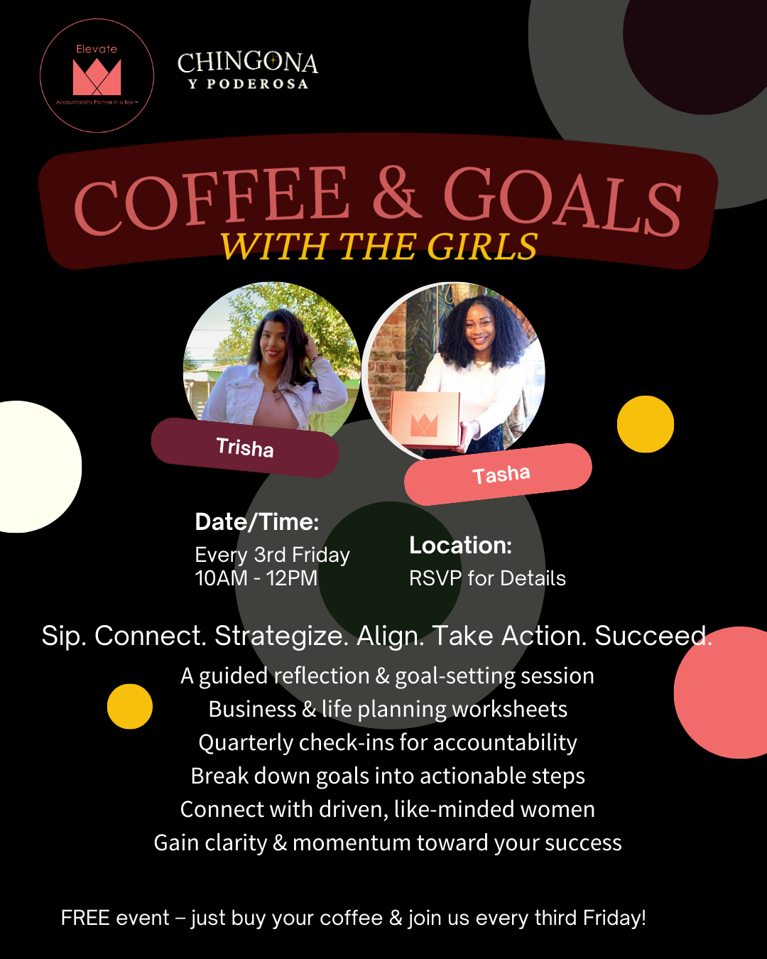 β Coffee & Goals with the Girls Meetups – Intimate strategy sessions where we set aligned goals, sip cafecito, and make power moves.
